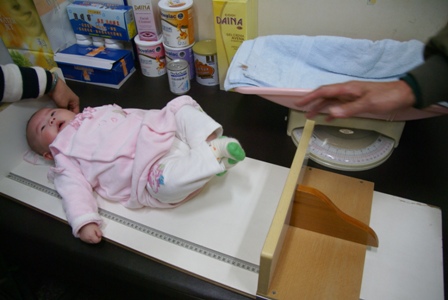 今天是打預防針的日子,總共有五合一第2劑及輪狀病毒疫苗口服劑這2項,在醫生看診前依慣例當然就是量量身高、體重以及頭圍,目前小荳約4個月大,身高:64cm,體重:7.1kg,若扣除穿的衣物,預估約7.0kg,護士小姐說成長曲線很不錯,到達80%,看來小荳荳妹妹有很認真的喝ㄋㄟㄋㄟ,或許也是慢慢長大了,要滴口服劑,好像也有查覺不太對勁,開始有點在哭哭,至於打針的話就更明顯了,至少也哭了好幾分鐘,打完針後還安撫了好一陣子。