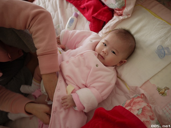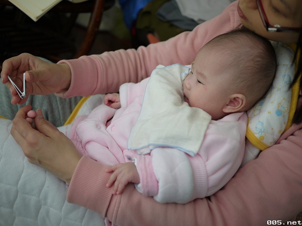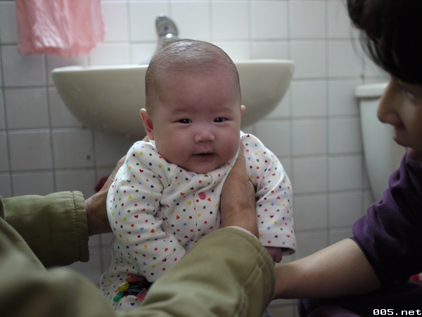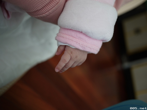 這星期回到家第一眼看到小妹子(=>就是我們家的小荳荳啦),突然發現好像有一點不一樣喔,雖然也才5天沒看到她,但好像這星期長大的幅度特別明顯,^________________^,第一個就是她的頭髮長長了不少,再來就是她的手手,也能看的出來比之前大了些。