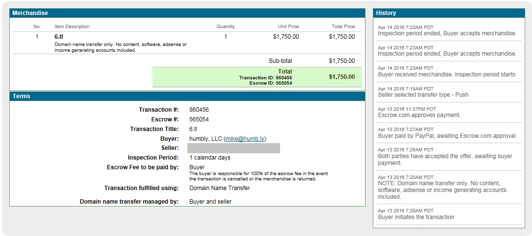 買家原本的出價是$2.3M,最後提高到了$2.5M,不過我們一直還沒確認交易的原因是買家的來源,因為有點怪異,後來直接以郵箱去反查才發現是46.com的註冊資料,一般如果查到這種結果應該會是很興奮,因為至少也是個大買家,只是對於往來郵件的內容我還是抱有懷疑的態度,因對方說來自USA,雖然是打英文,但從文字間感覺有點中式英文,所以特別詢問下牟總才知道46.com在前陣子是被盜了,而且還沒有拿回來,原擁有者對這件事好像也不怎在意的樣子,所以這個郵箱還是得提防提防,雖然價格讓我們蠻動心的,不過還是不要浪費時間在這個地方了。