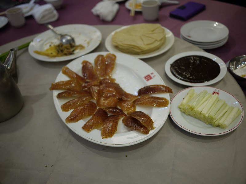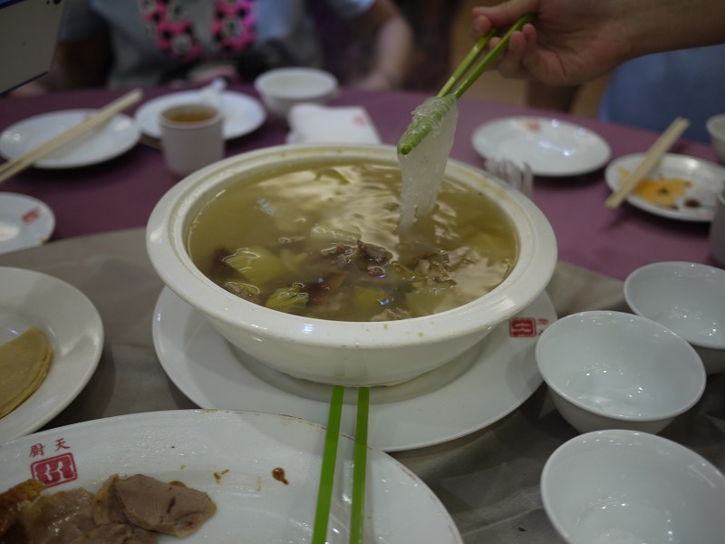 前幾周某個在屏東的同學在Line上通知說這周會上台北,所以就約了要聚餐,畢竟從研究所畢業後就很少見面的機會,再加上某些同學的工作在不同縣市,所以要約一個都可以到的時間也真不容易,即使今天也是有幾個同學有事沒有到,像我跟jessy倆要出門也很累,除了兩個小朋友,還得帶些必備的東西,像是小小妹就需要手推車,這次真的有用到,今天當我們抵達時,會出席的都已經出席了,不會出席的當然就不會到囉,先點了餐點後,上菜前就聊聊各自的現況,我們家老大比較好處理,點了個炒飯給她,再加上一些比較好咬的菜色,因為今天出門我們也忘了帶他剪菜的剪刀,不過今天用起餐來說還ok,可能在學校內吃飯也有慢慢練習自己咬,反倒是小小妹在平常的7,8點有時已經想睡覺,所以從一開始都是要人抱,意外的是後來抱著她,後來頭靠在我的肩膀上竟也睡著了,就將她抱到手推車上繼續睡,這樣才有繼續用餐的時間,原以為是要這樣抱她一整場@@除了閒聊外,這家餐廳的烤鴨真不錯吃,有機會可以試試。