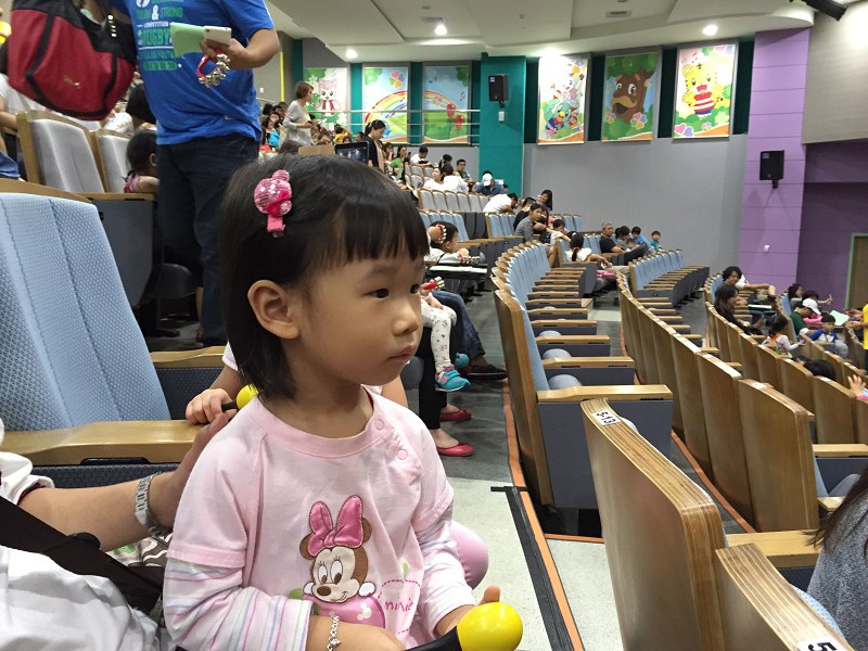 好幾個月前上網幫兩個小傢伙訂的音樂劇,相較之前去看過需要1,2個小時的劇場,這節目只有40分鐘,時間比較短,這樣也好,她們比較可以靜下來,否則像老大上次2歲還是3歲時去看劇場,也僅僅只看了上半場就睡著了,就帶回家。