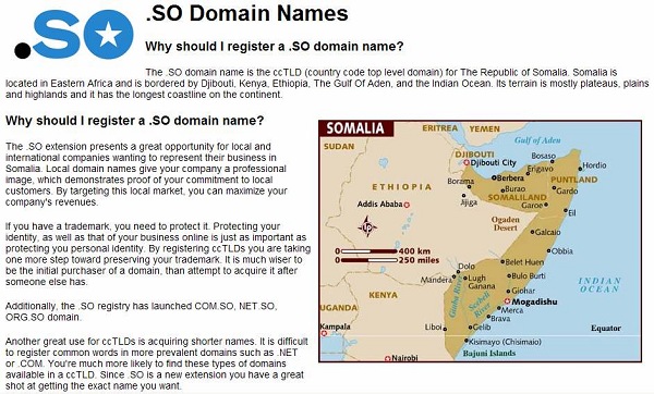 2011.04.01索馬利亞的國家後綴開放註冊,它的後綴名稱是.so,所以就是xxx.so,不過這類的訊息對我已經沒啥吸引力,因為這種後綴對我而言,感覺沒什麼投資價值,與前陣子炒很熱的.co相比,個人覺得更是差了十萬八千里,畢竟.co還有.com的typo解釋,雖然說實際.co能由.com域名撿到多少流量還有待證明,但至少像是.co.uk也是採.co,那.so呢?想不出0_O,I think so?I don’t think so?那要做什麼網站?據說還有人註冊了幾百個三位數.so,註冊費以$20/個計算,非常好奇可以撐幾年?