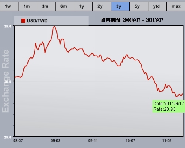 為什麼會特別注意美元呢?因為不管買進或賣出主要幣別就是美元,所以也特地開了外幣帳戶,尤其是這幾年有賣了幾個域名,除非需要用到美元,例如:再次買入投資或是出國到美國去時,雖然對於1:35時沒啥印象,但印象中當初曾有到1:32.x,跟jessy說是否考慮先賣掉一些呢?或許是有些小貪心,她想說等到32.5再賣,結果還沒等到就咚一聲往下跌,一直跌到30.85,想說應該也差不多了吧,還買了500美元等著反彈,結果甚至到現在跌破了29元大關,真是一整個傻眼,扣除之前又動用的部份,整個計算起來,匯率上至少就損失了十幾萬~唉~~美元美元ㄚ,你應該會慢慢漲回來吧??? 0__o